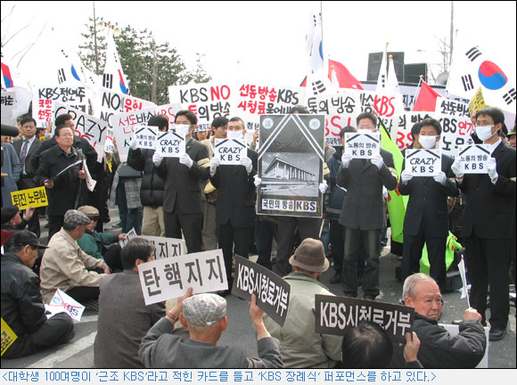 이날 노무현 탄핵지지 대학생 모임인 ’청년 아카데미‘와 미래한국연구회’ 소속 대학생 100여명은 ‘선동방송 KBS 시청료 물어내라,’ 'KBS 연기대상 노무현‘등이 적힌 플래카드와 함께 ’근조 KBS'라고 적힌 카드를 들고 입장하여 ‘KBS장례식’ 퍼포먼스를 벌려 참가자들의 박수 갈채를 받았다. 이들은 ‘대통령이 탄핵 될만한 사유가 있는데도 불구하고 일반 국민들이 방송 보도만 보고 감정적으로 대하는 것 같아서 이를 바로잡기 위해 시위에 참여했다.’고 말했다.