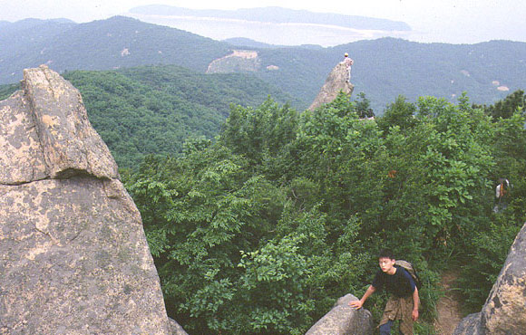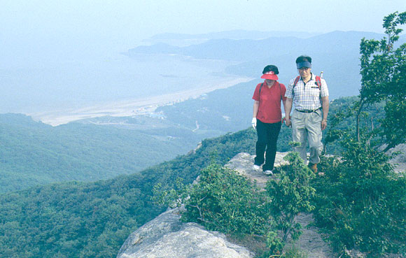 산치고 높이가 이백 몇미터라면 동네 뒷산 정도로 알지만 섬 산들은 해발 0m부터 시작하기 때문에 산을 오르는데는 에누리가 없다. 육지의 400m-500m쯤 되는 산을 오르는 것과 마찬가지로 힘이 든다. 국사봉이나 호룡곡산도 마찬가지다. 야트막한 산이라고 깔보았다가는 큰 코 다친다. 게다가 산의 생김새가 평범한 육산이 아니라 아기자기한 돌산이다. 바위틈을 비집고 오르내리는 산길과 중간 중간에 늘어선 너럭바위, 마당바위, 부처바위, 호랑바위등 크고 작은 기암들이 등산인들의 발길을 머무르게 한다. 그런가 하면 능선 곳곳에 피로와 스트레스를 날려보내는 멋진 조망대와 쉼터가 있어 4시간 동안의 산행이 전혀 지루하지 않다.