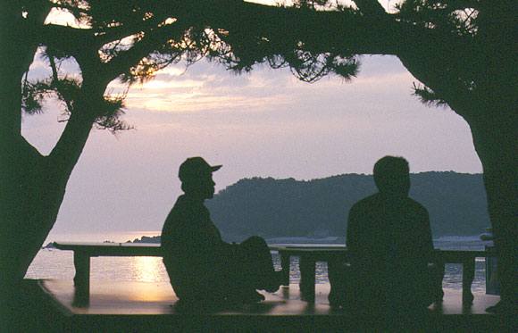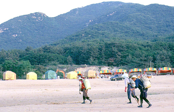 <하나개 해수욕장. 먼나 먼 갯벌에서 조개잡이를 하고 돌아오는 어부들을 만났다.>