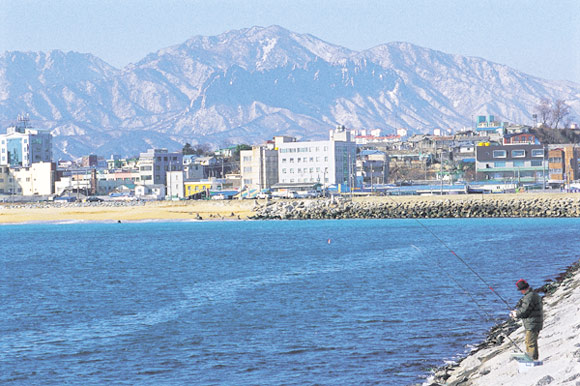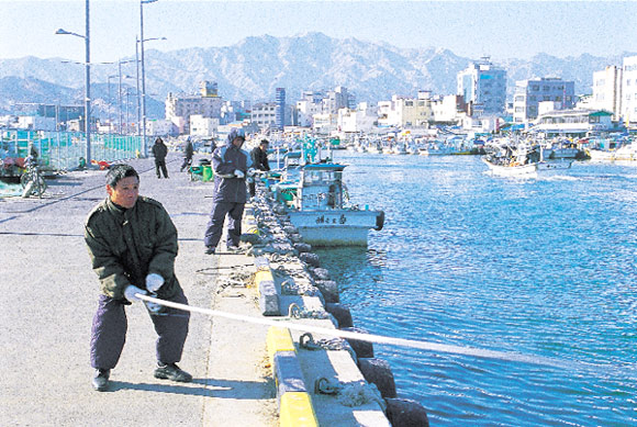 눈부시게 빛나는 설악산이 올려다 보이는 속초시 청호동 속초항 내만. 겨울이면 청어, 숭어, 황어, 이면수, 전갱이떼가 몰려든다.