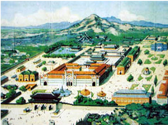 경복궁 훼손도. 일제는 경복궁에서 각종 박람회를 개최하면서 궁궐을 파괴했다. 해방 후 우리가 경복궁을 망친 것도 만만치 않다.