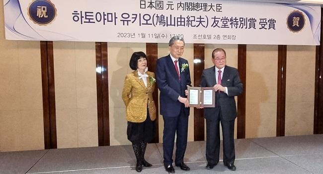 11일 우당재단은 서울 중구 조선호텔에서 시상식을 열고 하토야마 전 총리에게 우당특별상을 수여했다.