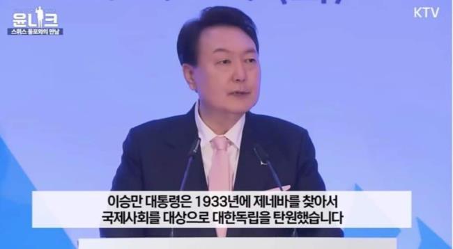 다보스포럼 참석차 스위스를 방문 중이던 윤석열 대통령은 1월 17일 ‘스위스 동포 초청 만찬 간담회’에서 이승만 전 대통령을 언급했다.
