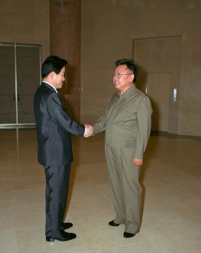 - ¹æºÏÇÑ Á¤µ¿¿µ(¿ÞÂÊ) ÅëÀϺΠÀå°üÀÌ 2005³â 6¿ù 17ÀÏ Æò¾ç ´ëµ¿° ¿µºó°ü¿¡¼ ºÏÇÑ ±èÁ¤Àϰú ¸¸³ª ¾Ç¼öÇϰí ÀÖ´Ù.