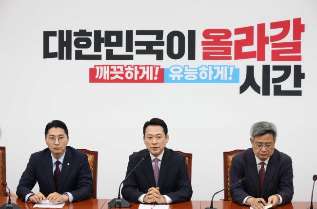- 장동혁 국민의힘 대표가 24일 오전 서울 여의도 국회에서 열린 기자간담회에서 취재진의 질문에 답변하고 있다. 사진=뉴시스