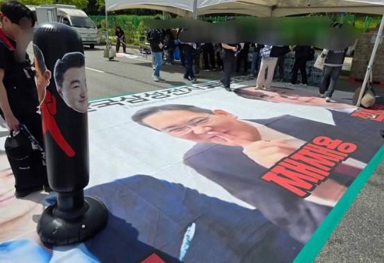 앞서 노조 측은 지난 23일 총파업 결의대회에서 노조원들이 지나다니는 바닥에 이재용 회장과 노태문 삼성전자 DX 부문장, 전영현 삼성전자 DS 부문장의 사진을 붙여두고 노조원들로 하여금 발로 밟고 지나가게 했다. 사진에는 ‘째째용’ ‘전시황’ ‘노때문’ 등 조롱성 별칭이 적혔다.