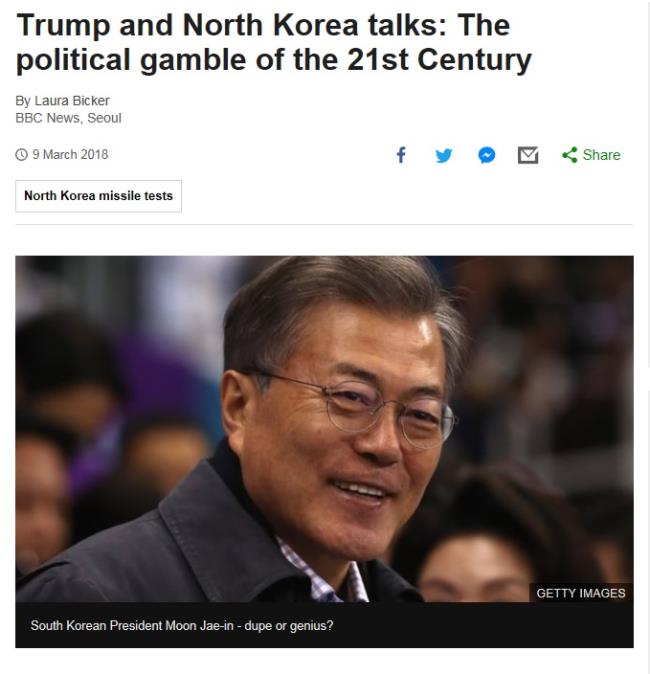 BBC´Â "¼ÓÀ» ¾Ë±â ¾î·Á¿î °ø»ê ±¹°¡¿Í ´ëȸ¦ ÇÏ´Â °ÍÀº ¾öû³ µµ¹Ú"À̶ó°í ÀüÁ¦ÇÑ µÚ ¡°¹®ÀçÀÎ ´ëÅë·ÉÀÇ ºÏ¹Ì ÁßÀç ³ë·ÂÀÌ ½ÇÆÐÇÏ¸é ´Ù½Ã º¶û ³¡À¸·Î µ¹¾Æ°¥ ¼ö ÀÖÁö¸¸ ¸¸¾à ¹®ÀçÀÎ ´ëÅë·ÉÀÌ ºÏ¹Ì Á¤»óȸ´ãÀ» ¼º»ç½ÃÄÑ Çѹݵµ¿¡¼ ÇÙÀüÀï À§ÇèÀ» ÁÙÀÎ´Ù¸é ³ëº§ ÆòÈ»óÀ» Å» ¼öµµ ÀÖ´Ù¡±°í Àü¸ÁÇß´Ù.