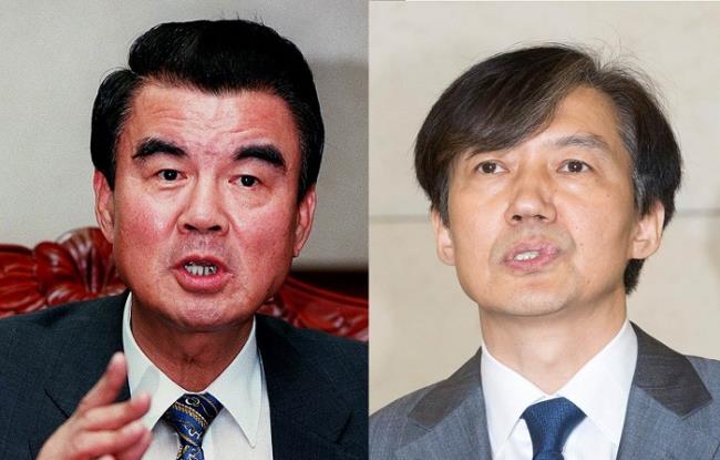 - 김태정(좌) 전 법무장관과 조국(우) 법무장관 후보자. 사진=조선DB