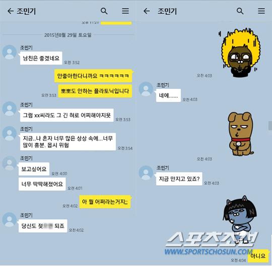 성추행 혐의를 받고 있는 배우 조민기가 피해 여성에게 보낸 카카오톡(이하 카톡) 메시지 내용이 공개됐다. 메시지에는 성적으로 희롱하는 발언은 물론, 조씨가 피해 여성에게 자신의 성기 사진을 찍어 보낸 것으로 드러나 파문이 예상된다.