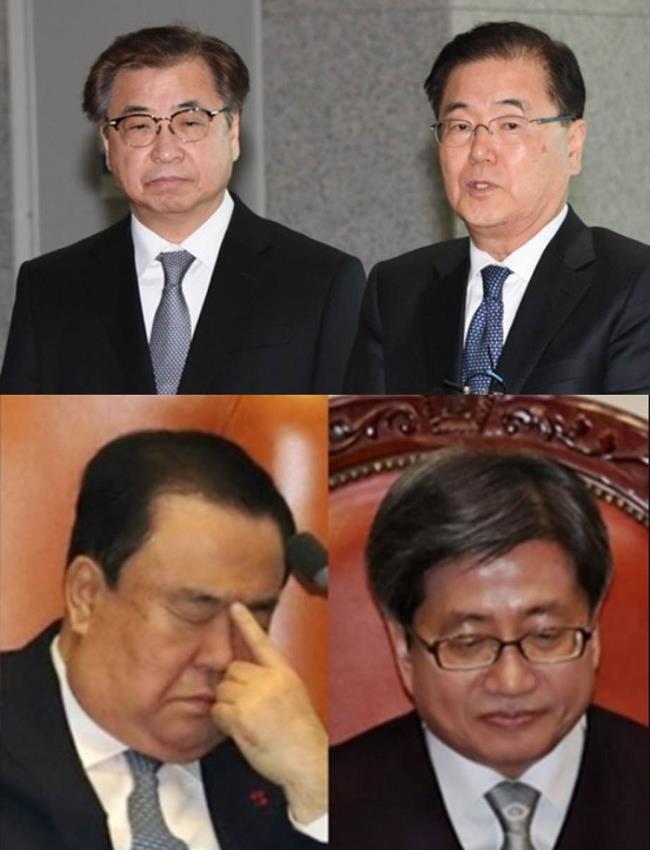 - 서훈 국정원장, 정의용 청와대 국가안보실장, 김명수 대법원장, 문희상 국회의장 (윗줄 왼쪽부터 시계 방향)