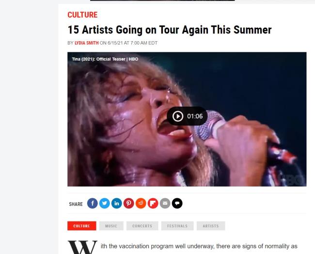 미국 시사전문지 《뉴스위크》지는 최신호에서 올 여름 콘서트를 재개하는 아티스트 15명을 소개했다.