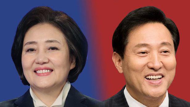 - 박영선 전 중소벤처기업부 장관(왼쪽)과 오세훈 서울시장. 사진=조선DB