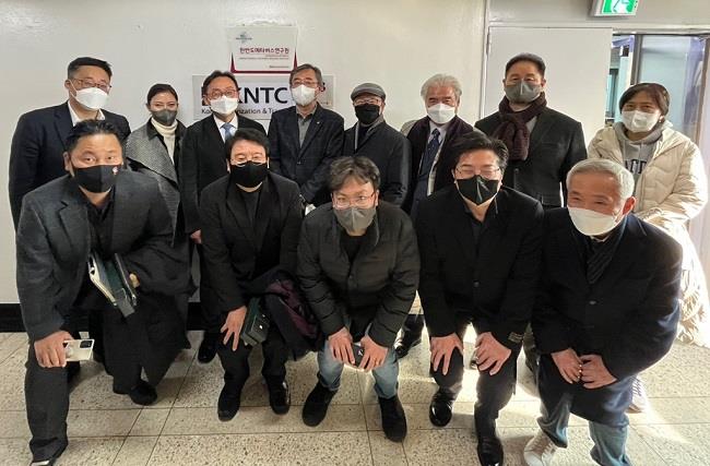 - 16일 광화문 경동대학교 빌딩 14층에서 한반도메타버스연구원 멤버들이 개원식 후 념촬영을 하고 있다. 사진=한반도메타버스연구원
