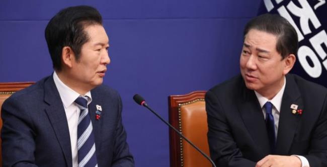 - ´õºÒ¾î¹ÎÁÖ´ç ÃÖ°íÀ§¿øÈ¸ÀÇ¿¡¼ ´ëÈÁßÀÎ Á¤Ã»·¡ ´ëÇ¥(¿ÞÂÊ)¿Í ±èº´±â ¿ø³»´ëÇ¥. »çÁø=´º½Ã½º