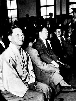 | 1959³â ±¹°¡º¸¾È¹ý À§¹ÝÀ¸·Î °á±¹ »çÇü´çÇÑ Á¶ºÀ¾Ï Áøº¸´ç ´ç¼ö°¡ ÀçÆÇÁ¤¿¡ ³ª¿Í ¾ÉÀº ¸ð½À(¿ÞÂÊ). |