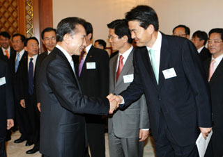 | À̸í¹Ú ´ëÅë·ÉÀÇ À̹ÌÁö¸¦ ³Ñ¾î¼³ ¶§ ±èÅÂÈ£ ÃѸ® Èĺ¸ÀÚ¿¡°Ô ¾Õ³¯ÀÌ ÀÖÀ» °ÍÀÌ´Ù. Áö³ 2008³â 5¿ù Àü±¹ ½Ã¤ýµµÁö»ç ±¹Á¤¼³¸íȸ¿¡¼ À̸í¹Ú ´ëÅë·É°ú ±èÅÂÈ£ ´ç½Ã °æ³²Áö»ç. |