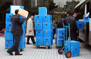 | Áö³ 10¿ù 27ÀÏ, ¼¿ï¼ºÎÁö°Ë °ü°èÀÚµéÀÌ ÇÑÈ±×·ì °è¿»ç¸¦ ¾Ð¼ö¼ö»öÇÑ ÈÄ Áõ°Å¹°À» µé°í °Ç¹°À» ³ª¼°í ÀÖ´Ù. |