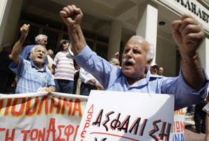 - ±×¸®½ºÀÇ °æÁ¦À§±â´Â °úµµÇÑ º¹ÁöÁ¤Ã¥¿¡¼ ºñ·ÔµÆ´Ù. ±×¸®½º Á¤ºÎ°¡ ¿¬±Ý Ãà¼Ò¸¦ °áÁ¤ÇÏÀÚ ¿¬±Ý ¼ö·ÉÀÚµéÀÌ º¸°ÇºÎ °Ç¹° ¾Õ¿¡¼ ½ÃÀ§¸¦ ¹úÀ̰í ÀÖ´Ù.