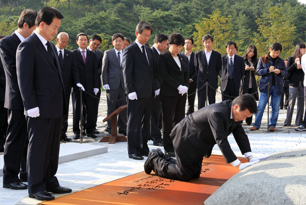 | ÀÛ³â 10¿ù 6ÀÏ ¹ÎÁÖ´ç ¼ÕÇÐ±Ô ´ëÇ¥°¡ °æ³² ±èÇØ½Ã Áø¿µÀ¾ ºÀÇϸ¶À»À» ¹æ¹®ÇØ °í(ͺ) ³ë¹«Çö Àü ´ëÅë·É ¹¦¿¡¼ Å«ÀýÀ» ÇϰíÀÖ´Ù. |