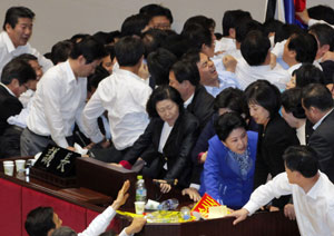 | ±¹¹Îµé¿¡°Ô´Â ÆÄÇà°ú Á¡°Å¸¸ ±â¾ïµÇ°í ÀÖÀ» »ÓÀÓ¿¡µµ ±¹È¸ÀÇ¿øµéÀº ¿¬Áß »ó½Ã ±¹È¸ Ãß¼¼¶ó´Â ÀÌÀ¯·Î º¸ÁÂÁøÀ» ´Ã¸®´Â ¹ý¾ÈÀ» ½º½º·Î Åë°ú½ÃÄ×´Ù. |
