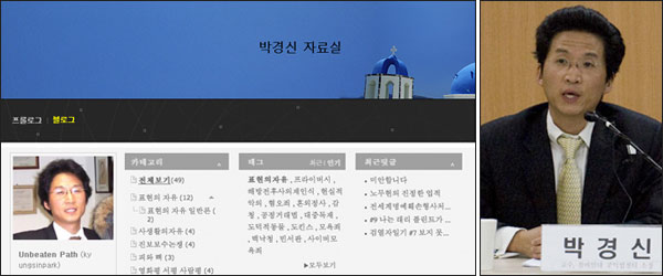 - ¹æ¼ÛÅë½Å½ÉÀÇÀ§¿øÀÎ ¹Ú°æ½Å °í·Á´ë ¹ýÇÐÀü¹®´ëÇпø ºÎ±³¼ö(¿À¸¥ÂÊ)¿Í ±×ÀÇ ºí·Î±×(¿ÞÂÊ).