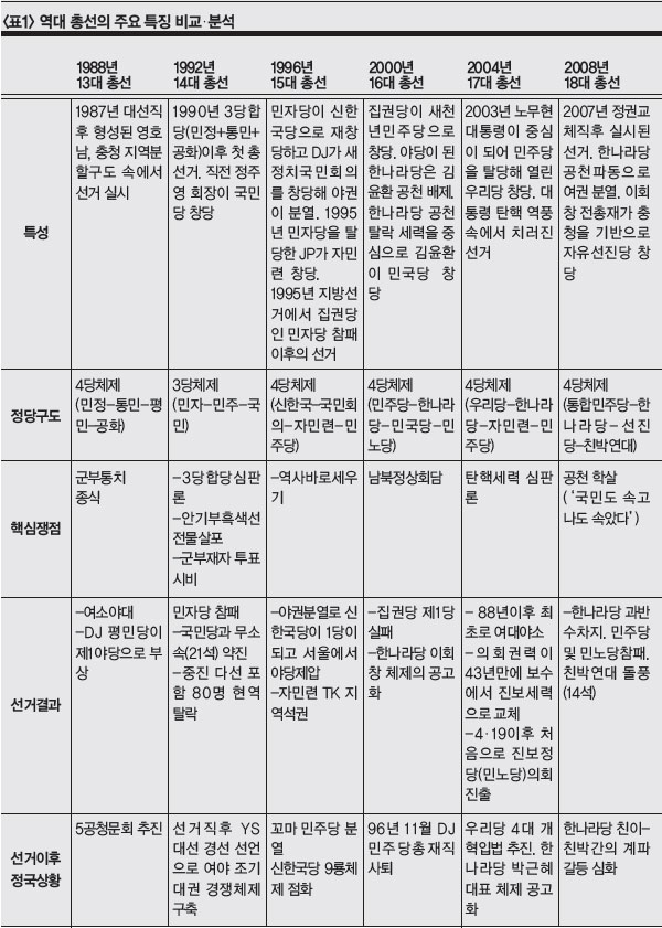 ù°, ¿ª´ë ÃѼ±Àº ´ëü·Î ´Ù´ç(ÒýÓÚ) ±¸µµ ¼Ó¿¡¼ Ä¡·¯Á³´Ù. 1992³â ÃѼ±¿¡¼´Â ÅëÀϱ¹¹Î´ç, 2008³â ÃѼ±¿¡¼´Â ÀÚÀ¯¼±Áø´ç µî Á¦3Á¤´çÀÌ ¸¸µé¾îÁö°Å³ª, 1996³â ÃѼ±¿¡¼¿Í °°ÀÌ ¾ß±ÇÀÌ ºÐ¿µÇ¾ú±â ¶§¹®¿¡ °¡´ÉÇß´Ù.