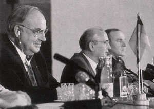 | ÄÝ µ¶ÀÏ ÃѸ®(¿ÞÂÊ)´Â °í¸£¹ÙÃÊÇÁ ¼Ò·Ã °ø»ê´ç ¼±âÀå(°¡¿îµ¥)À» ¼³µæ, 1990³â 7¿ù 16ÀÏ ¼Ò·ÃÀ¸·Î ÇÏ¿©±Ý µ¶ÀÏÅëÀÏÀ» ¿ëÀÎÇÏ°Ô ¸¸µé¾ú´Ù. |