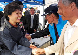 | ¹Ú±ÙÇý ÀÇ¿øÀÌ ÀÛ³â 10¿ù 9ÀÏ ¡®´Þ¼º±º¹ÎÀÇ ³¯¡¯ Çà»ç¿¡ Âü¼®ÇØ ±º¹Îµé°ú Àλ縦 ³ª´©°í ÀÖ´Ù. |
