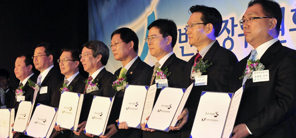 | 2011³â 12¿ù 13ÀÏ ¼¿ï ¿©Àǵµ 63ºôµù¿¡¼ ¿¸° µ¿¹Ý¼ºÀåÀ§¿øÈ¸ 1Áֳ⠱â³ä½Ä¿¡ Âü¿©ÇÑ ´ë±â¾÷ ´ëÇ¥µé. |