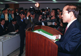 | ÀÌȸâ ½ÅÇѱ¹´ç ÃÑÀç°¡ 1997³â 10¿ù 22ÀÏ ±è¿µ»ï ´ëÅë·ÉÀÇ Å»´çÀ» Ã˱¸ÇÏ´Â ±âÀÚȸ°ßÀ» Çϰí ÀÖ´Ù. YSÀÇ Å»´ç¿¡µµ ºÒ±¸Çϰí ÀÌȸâ ÃÑÀç´Â ´ë¼±¿¡¼ ÆÐ¹èÇß´Ù. |