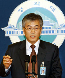 | ³ë¹«Çö ´ëÅë·ÉÀÌ 2005³â 7¿ù û¿Í´ë ÃáÃß°ü¿¡¼ ÀÚ½ÅÀÇ ¿¬Á¤ Á¦¾È¿¡ ´ëÇØ ¼³¸íÇϰí ÀÖ´Ù. |