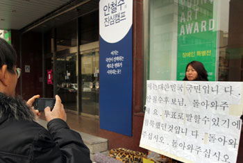 - ¾Èö¼ö Àü ¼¿ï´ë À¶ÇÕ°úÇбâ¼ú´ëÇпøÀåÀÌ ¹«¼Ò¼Ó ´ëÅë·É È常¦ Æ÷±âÇÑ ÀÌÆ² ÈÄÀÎ 2012³â 11¿ù 25ÀÏ ÇÑ ÁöÁöÀÚ°¡ Ä·ÇÁ ¹Û¿¡¼ ¾È Àü È帰¡ µ¹¾Æ¿Ã °ÍÀ» È£¼ÒÇÏ´Â 1ÀνÃÀ§¸¦ ¹úÀ̰í ÀÖ´Ù. Á¤º¸¸ÇµéÀº ¾ß±Ç Çʽ īµå¿´´ø ´ÜÀÏȰ¡ Áö¿¬µÊÀ¸·Î½á ´ÜÀÏÈ È¿°ú°¡ ¹Ý°¨ÇÑ °ÍÀ¸·Î º¸°í ÀÖ´Ù.