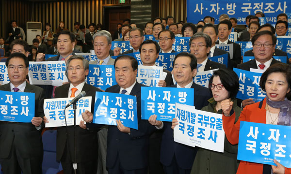 | 2014³â 11¿ù 6ÀÏ »õÁ¤Ä¡¹ÎÁÖ¿¬ÇÕÀº ±¹È¸¿¡¼ ÀÇ¿øÃÑȸ¸¦ °®°í ÀÚ¿ø¿Ü±³ µî¿¡ ´ëÇÑ ±¹Á¤Á¶»ç ½Ç½Ã¸¦ »õ´©¸®´ç¿¡ Ã˱¸ÇÏ´Â °áÀÇ´ëȸ¸¦ °¡Á³´Ù. |
