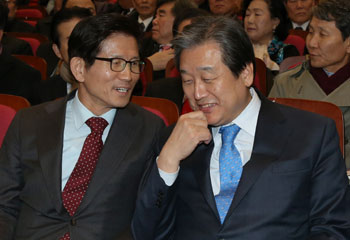 | 2014³â 12¿ù 5ÀÏ ¿¸° »õ´©¸®´ç ¡®´ëÇѹα¹ ±¹°¡´ëÇõ½ÅÀ» À§ÇÑ ±¹¹Î´ëÅä·Ðȸ¡¯¿¡¼ ±è¹«¼º ´ëÇ¥(¿À¸¥ÂÊ)¿Í ±è¹®¼ö º¸¼öÇõ½ÅÀ§¿øÈ¸ À§¿øÀåÀÌ À̾߱⸦ ³ª´©°í ÀÖ´Ù. |