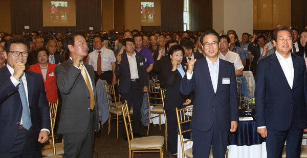 | ±è¹«¼º »õ´©¸®´ç Àü ´ëÇ¥°¡ Áö³ 7¿ù 14ÀÏ ¿ÀÈÄ ¼¿ï ´ç»êµ¿ ±×·£µåÄÁº¥¼Ç¼¾ÅÍ¿¡¼ ¿¸° 7¡¤14 Àü´ç´ëȸ 2Áֳ⠸¸Âù¿¡¼ ÁöÁöÀڵ鿡°Ô ¼ÕÀ» µé¾î ÀλçÇϰí ÀÖ´Ù. |