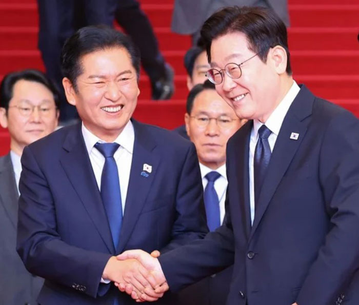 - 2025³â 11¿ù 4ÀÏ ÀÌÀç¸í ´ëÅë·É(¿À¸¥ÂÊ)ÀÌ ¼¿ï ¿©Àǵµ ±¹È¸¿¡¼ ¿¸° 2026³âµµ Á¤ºÎ ¿¹»ê¾È¿¡ ´ëÇÑ ½ÃÁ¤¿¬¼³À» ¸¶Ä¡°í Á¤Ã»·¡ ´õºÒ¾î¹ÎÁÖ´ç ´ëÇ¥¿Í ÀλçÇϰí ÀÖ´Ù. »çÁø=´º½Ã½º