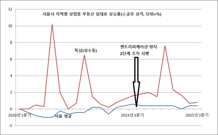 ¼ºµ¿±¸°¡ 2022³â 10¿ùºÎÅÍ 4°³¿ù°£ ½Ç½ÃÇÑ ¡®¼º¼ö¿ª ÀÏ´ë Á¨Æ®¸®ÇÇÄÉÀÌ¼Ç ´ëÀÀ¹æ¾È ¸ð»ö ¿¬±¸¿ë¿ª¡¯ÀÇ ´ë»ó Áö¿ª ½ÇÅÂÁ¶»ç °á°ú, 2022³â ±âÁØ Æò´ç ÀÓ´ë·á´Â 2018³âÀÇ 10¸¸¿ø¿¡¼ 50% »ó½ÂÇÑ 15¸¸¿øÀ¸·Î ³ªÅ¸³µ´Ù. °°Àº ±â°£ ÀÌ Áö¿ªÀÇ ¸ÅÃâ¾× Áõ°¡À²Àº 25.6%¿¡ ±×ÃÆ´Ù.
