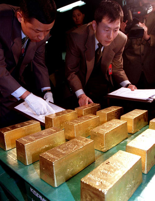 Çѱ¹ÀºÇàÀº 1998³â 2¿ù 26ÀÏ ±â¾÷ÀºÇàÀÌ ¡®±Ý ¸ðÀ¸±â ¿îµ¿¡¯À» ÅëÇØ ¸ðÀº ±Ý 290kgÀ» 12°³ÀÇ ±Ý±«·Î ¸¸µé¾î óÀ½À¸·Î »çµé¿´´Ù. »çÁø= Á¶¼±DB¡ª Áö±Ý ¿ø–´Þ·¯ ȯÀ²ÀÌ Ä¡¼ÚÀ¸´Ï±î ´Ùµé °ÆÁ¤À» Çϴµ¥¿ä.