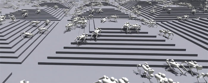 [±×¸²2] °¡»ó°ø°£¿¡¼ °È ÇнÀÀ» Çϰí ÀÖ´Â ¾à 4000´ëÀÇ ·Îº¿ À̹ÌÁö, Áö¹Ù°ø¾÷´ëÇÐ ¹Ì·¡·Îº¿ ±â¼ú¿¬±¸¼¾ÅÍ ÈÄÁöŸ ±³¼ö ¿¬±¸½Ç, »çÁø=À¯Æ©ºê ȸé ĸó¼¼ÀÌĵÀÌ »ó°ø°ú Áö»óÀ» ¼·Î ´Ü¼øÇÏ°Ô ¿¬°á½ÃÄ×´Ù¸é, ÀÌÁ¦ ·Îº¿Àº ½º½º·Î »õ·Î¿î µ¿ÀÛÀ» ¸¸µé¾î³»´Â ´Ü°è·Î ÁøÈÇϰí ÀÖ´Ù. ¿©±â¼ ÇÙ½ÉÀûÀÎ ¿ªÇÒÀ» ÇÏ´Â °ÍÀÌ ¹Ù·Î °È ÇнÀ(reinforcement learning)ÀÌ´Ù.