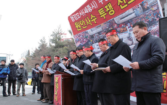 - 2009³â 1¿ù 11ÀÏ, Á¤ºÎÀÇ ¼¼Á¾½Ã ¼öÁ¤¾ÈÀÌ ¹ßÇ¥µÈ ÈÄ ¡®ÇàÁ¤µµ½Ã ¿ø¾È»ç¼ö ÃæÃ»±Ç ¿¬´ëȸÀÇ È¸¿ø¡¯µéÀÌ Ãæ³² ¿¬±â±ºÃ» ¸¶´ç¿¡¼ Á¤ºÎ¸¦ ±ÔźÇÏ´Â Áýȸ¸¦ ¿°í ÀÖ´Ù.