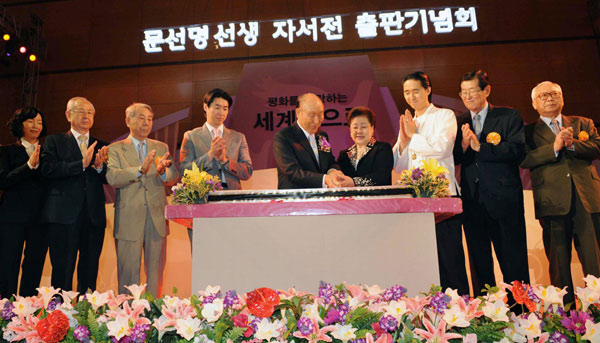 | ¹®¼±¸í ÅëÀϱ³ ÃÑÀç¿Í ºÎÀÎ ÇÑÇÐÀÚ¾¾°¡ 2009³â 6¿ù ¹® ÃÑÀçÀÇ ÀÚ¼Àü ÃâÆÇ±â³äȸÀå¿¡ µé¾î¼°í ÀÖ´Ù. ¿ÞÂÊÀÌ 7³² ¹®ÇüÁø, ¿À¸¥ÂÊÀÌ 3³² ¹®±¹ÁøÀÌ´Ù. |