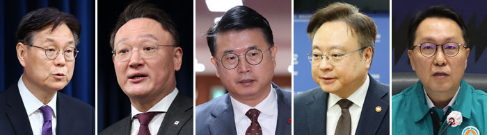 ÀÇ´ë Áõ¿øÀÇ ÁÖ¿ªµé. ¿ÞÂʺÎÅÍ À̰ü¼· Á¤Ã¥½ÇÀå(ÀÌÇÏ ´ç½Ã Á÷Ã¥), ¾È»óÈÆ »çȸ¼ö¼®, Àå»óÀ± »çȸ¼ö¼®, Á¶±ÔÈ« º¹ÁöºÎ Àå°ü, ¹Ú¹Î¼ö º¹ÁöºÎ Â÷°ü. »çÁø=´º½Ã½º.140ÆäÀÌÁöÀÇ °¨»çº¸°í¼¸¦ ÀÐÀ¸¸é µÎ ¹ø ³î¶ó°Ô µÈ´Ù. óÀ½¿£ ¾Æ¹«·± ±Ù°Åµµ ¾øÀÌ ¡®¹¯°í ´õºí·Î °¡¡¯ ½ÄÀ¸·Î ¡°´õ ´Ã·Á¡±¸¸ ¿ÜÄ¡´Â ´ëÅë·ÉÀÇ °ÅÄ£ ¸ð½À¿¡. ´ÙÀ½¿£ Æò»ý °øÁ÷¿¡ ¸ö´ã¾Æ ¿Â ¾È»óÈÆ(±³¼ö Ãâ½Å)¡¤À̰ü¼·¡¤Àå»óÀ±¡¤Á¶±ÔÈ«¡¤¹Ú¹Î¼ö µî °íÀ§ °ü·á 5ÀιæÀÌ ¿ÀÁ÷ ´ëÅë·É ÇÑ »ç¶÷¿¡°Ô Àß º¸À̰ڴٰí ÁËÀÇ½Ä ¾øÀÌ Åë°è¸¦ Á¶ÀÛÇÏ°í ¡®±×·² µíÇÑ Á¤Ã¥¡¯À¸·Î Æ÷ÀåÇØ °¡´Â ±× ´ë´ãÇÔ°ú Ä¡¹ÐÇÔ¿¡. ±×µé¿¡°Õ ¾ÖÃÊ¿¡ ±¹¹ÎÀÇ »ý¸í°ú ¾ÈÀü µûÀ© °ü½É ¹ÛÀ̾ú´Ù.