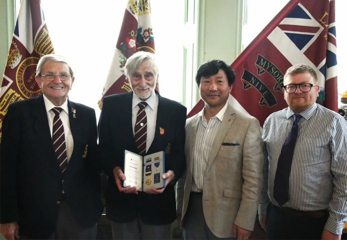 2023³â 7¿ù, °¿øµµ ö¿ø ÀÏ´ë¿¡¼ ¹ú¾îÁø ¡®ÈÄÅ© °íÁö ÀüÅõ¡¯¿¡ ÂüÀüÇÑ ·Î¹öÆ® ¸Þµµ¿ìÁîÀÇ Àå·Ê½Ä. űرⰡ º¸ÀδÙ.Äݸ° ÇìÀÌÄÛ(Colin Haycock). ¿µ±¹ ÇØ±ºÀ¸·Î Çѱ¹Àü¿¡ ÂüÀü, µ¿Çؾȿ¡¼ ÀÛÀü Áß ÇØ¾ÈÆ÷ÀÇ Á÷°ÝźÀ» ¸Â¾Æ µ¿·á°¡ Àü»çÇß´Ù. Äݸ°Àº ±× À̸§À» ±â¾ïÇϰí ÀÖ¾ú´Ù. ³ª´Â Çѱ¹¿¡ ¿ÔÀ» ¶§ ¿ë»ê ÀüÀï±â³ä°ü¿¡ »õ°ÜÁ® ÀÖ´Â À¯¿£±º Àü»çÀÚ µ¿ÆÇ¿¡¼ Äݸ°ÀÇ Àü¿ì À̸§À» »çÁø Âï¾ú´Ù. Äݸ°¿¡°Ô ±× »çÁøÀ» º¸¿©ÁÖÀÚ ±×´Â Á¶¿ëÈ÷ ¿ï±â¸¸ Çß´Ù.