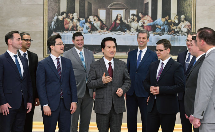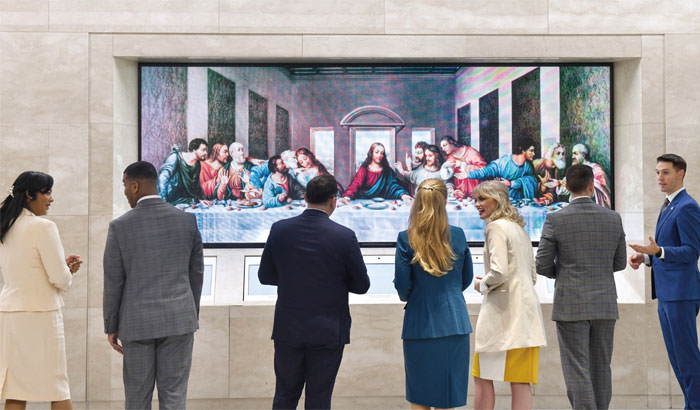 하나님의 교회 80차 해외성도방문단이 ‘하나님의 교회 새예루살렘 판교성전’ 1층 미디어월의 ‘최후의 만찬’ 그림을 살펴보며 담소를 나누고 있다.예수와 제자들의 성만찬 장면은 예술 작품에서도 중요한 소재가 됐다. 가장 유명한 작품은 레오나르도 다빈치의 〈최후의 만찬〉이다. 지금까지도 많은 예술가들이 모티프로 삼고 있지만 오늘날 기독교인들에게조차 유월절이 생소한 이유는 뭘까. 답을 알려면 중세 이전의 교회 역사로 거슬러 올라가야 한다.
