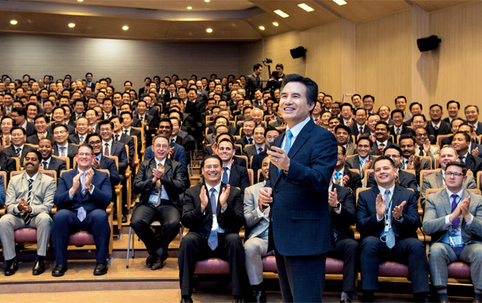 총회장 김주철 목사가 ‘대륙별 목회자 포럼’에서 각국에서 방한한 전 세계 목회자들에게 특강을 하고 있다.하나님의 교회는 부활절을 어떻게 지킵니까.