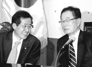 | ÀÌ»óµæ Àü ±¹È¸ºÎÀÇÀå°ú À̾߱⸦ ³ª´©´Â ¹ÚÈñÅ ´ëÇ¥. µÎ »ç¶÷Àº ¹ÎÁ¤°è ÀÇ¿øÀ¸·Î 20¿©³â ÀÇÁ¤È°µ¿À» ÇÔ²²Çß´Ù. |