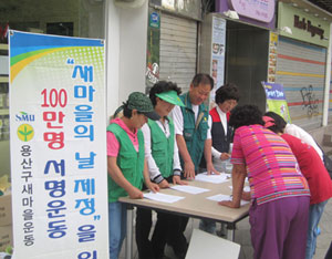 | ¡®»õ¸¶À»ÀÇ ³¯¡¯À» ±¹°¡±â³äÀÏ·Î Á¦Á¤Çϱâ À§ÇØ Àü±¹ »õ¸¶À» ȸ¿øµéÀÌ ¼¸í¿îµ¿À» ¹ú¿© 105¸¸¸íÀÇ ¼¸í ½ÇÀûÀ» °ÅµÎ¾ú´Ù. |