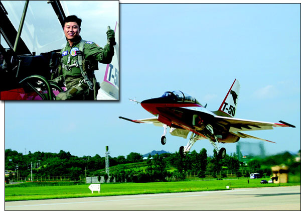 40ºÐÀÌ Áö³ ¿ÀÈÄ 5½Ã4ºÐ, ·£µù±â¾î¸¦ Æí T-50ÀÌ ³¯·ÆÇÏ°Ô »çõºñÇàÀå¿¡ Âø·úÇß´Ù. ÃʵµºñÇàÀº ´ë¼º°øÀ̾ú´Ù. Á¶ Áß·ÉÀº T-50¿¡¼ ³»¸®´Â ¼ø°£, µ¿·áµé·ÎºÎÅÍ ¼¤ÆäÀÎ ¼¼·Ê¸¦ ¹Þ¾Ò´Ù. ¸¶ÇÏ 1.5ÀÇ ÃÊÀ½¼Ó ºñÇà±â¸¦ ¿ì¸® ¼ÕÀ¸·Î °³¹ßÇÑ °ÍÀ̾ú´Ù. T-50ÀÇ ºñÇà ¼º°øÀº ¿ì¸®³ª¶ó°¡ ¼¼°è 12¹øÂ° °íÀ¯¸ðµ¨ ÃÊÀ½¼Ó Ç×°ø±â »ý»ê±¹ÀÌ µÆÀ½À» ´ë³»¿Ü¿¡ °øÇ¥ÇÏ´Â ¼ø°£À̾ú´Ù.