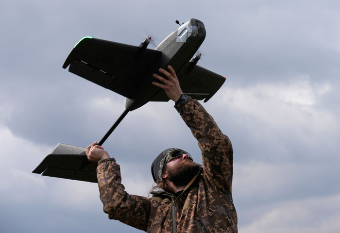 2026년 3월 19일 우크라이나 키이우 인근에서 한 훈련병이 연습용 표적 드론을 날리고 있다. 사진=뉴시스/AP― 우크라이나가 미국-이란 전쟁을 계기로 이른바 방산 틈새시장에도 진출하고 있습니다.