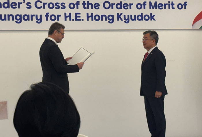 홍규덕 전 주 헝가리 대사는 헝가리 정부로부터 양국 관계에 기여한 공로를 인정받아 십자대훈장을 받았다. 사진=홍규덕 제공― 당장 무엇부터 시작해야 할까요?